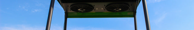 Keep free of dust, debris, and bugs while staying cool with our Dual Rheostat Fan System for the John Deere TS, TX, and TE Gator. The system is composed of two 14” fans each capable of producing approximately 2000 CFM with dual rheostat controls. The fans attach directly to the uprights of your Fortress Lo Pro system. All existing systems with Lo Pro design top both Slim and Shady (introduced in 2016) are eligible for this modular upgrade.